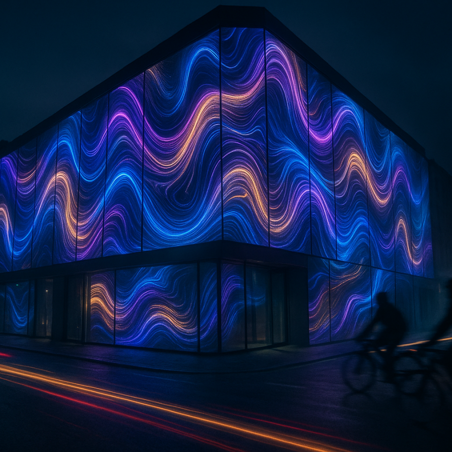 Generative light mapped onto a city façade.